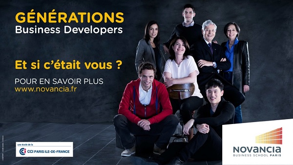 La campagne de Novancia vise notamment à donner un aperçu des carrières possibles dans ce domaine. Elle met en scène, à travers des annonces presse, des bannières et un espace dédié sur le site internet de l’école, des Business Developers reconnus ou en devenir, issus ou impliqués dans l’école, comme Philippe Houzé (Président du Directoire du groupe Galeries Lafayette et Président du Conseil d’Etablissement de Novancia), Marie Huet (Directrice générale des parfums d’Orsay, diplômée de Novancia), ou Augustin Paluel-Marmont (Co-fondateur de Michel & Augustin et membre du Conseil d’Orientation de l’école)…